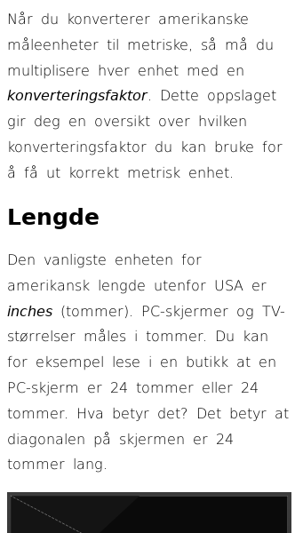 Oppslag om Omgjøring fra amerikanske til metriske måleenheter