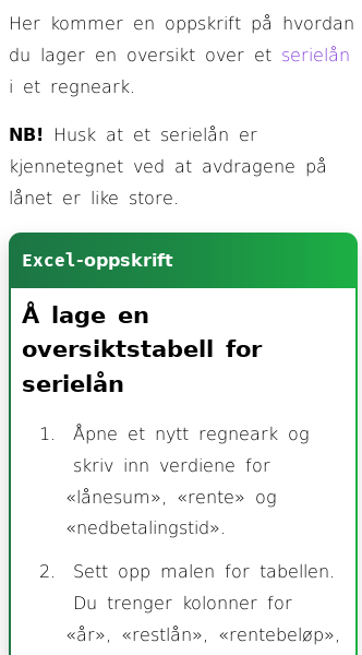 Oppslag om Hvordan sette opp serielån i Excel