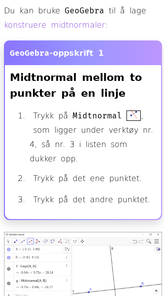 Oppslag om Hvordan lage en midtnormal i GeoGebra