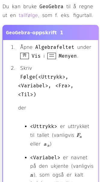 Oppslag om Hvordan bruke summetegnet i GeoGebra