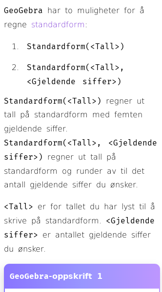 Oppslag om Hvordan skrive standardform i GeoGebra